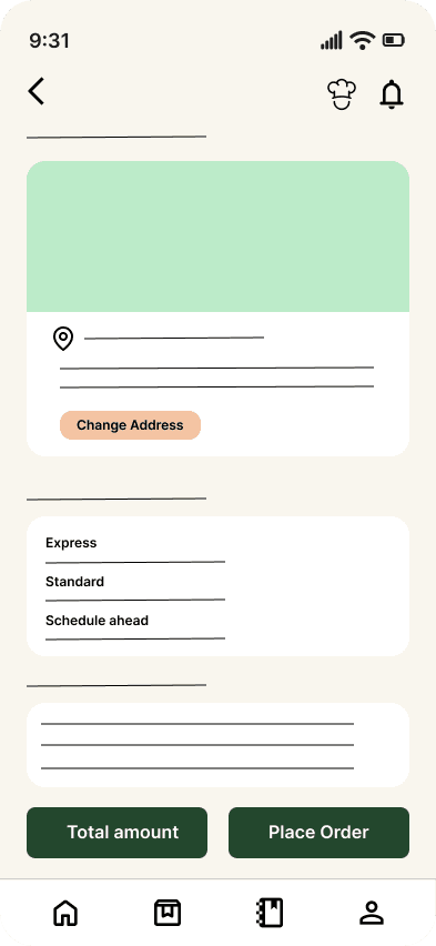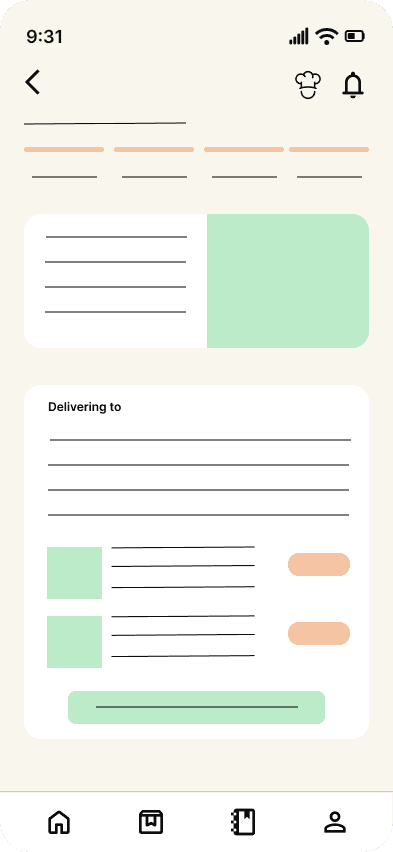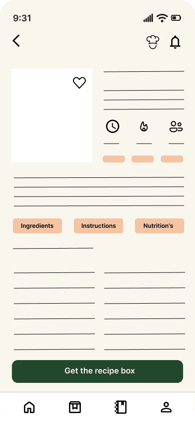 With the structure mapped, I sketched lo-fi wireframes to bring the user's story to life, showing how planning, customizing and cooking unfold step by step.
